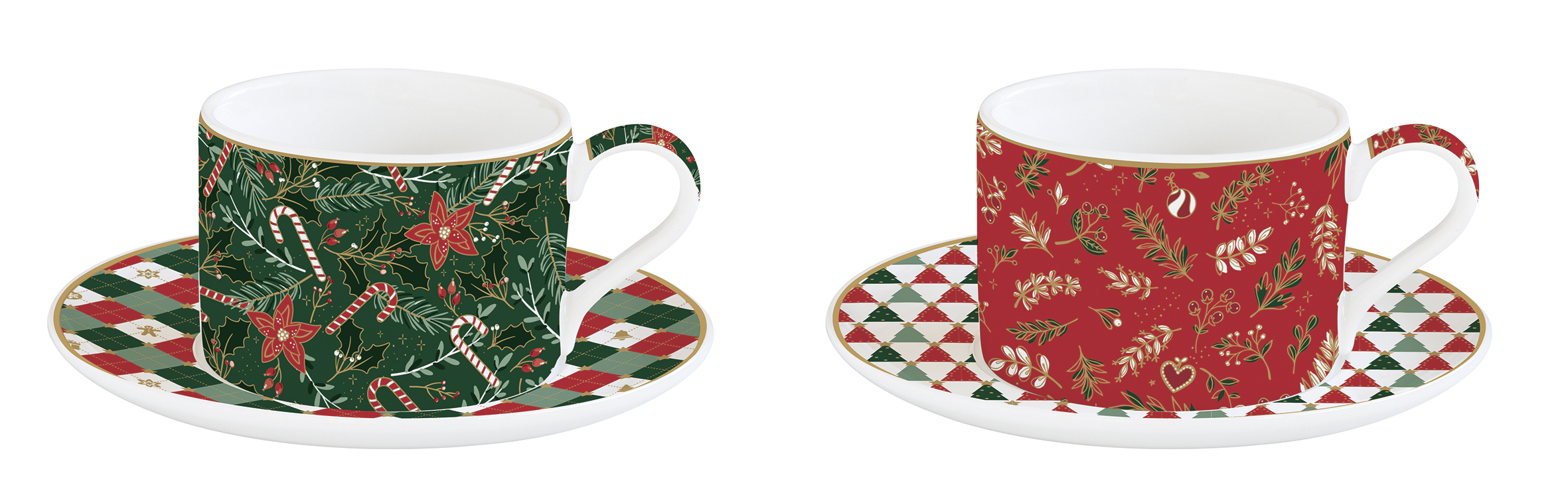 Porceláncsésze+alj 240ml, 2 személyes, dobozban, Coffee Mania, Fancy Christmas