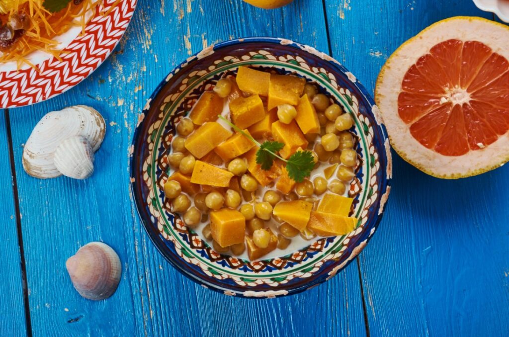 A tajine Észak-Afrika szimbóluma: nevét a jellegzetes cserépedényről kapta, amelyben lassan, gőzben párolódnak az alapanyagok. A marokkói konyha különlegessége, hogy édes és sós ízeket bátran kever – a sütőtök, a fűszerek és az aszalt gyümölcs együtt adják meg ennek a fogásnak a mély, napérlelt ízvilágát.