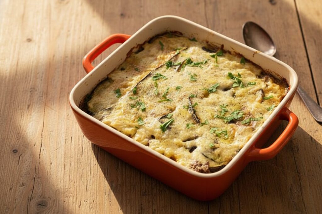 A sült padlizsán, a fűszeres húsragu és a lágy, aranyló besamel együtt egy igazi napfényes, otthonos étel.