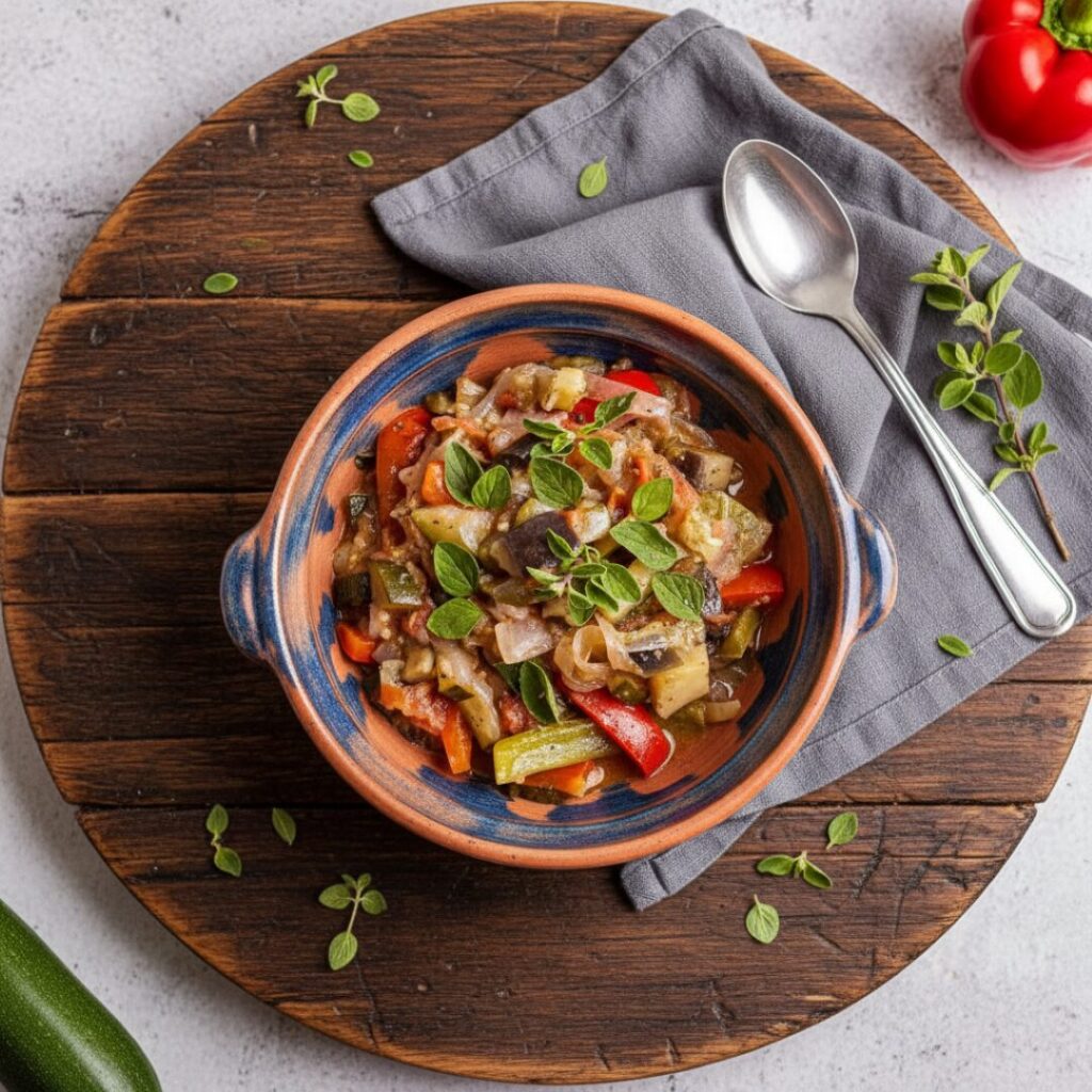 Ez a mediterrán zöldségragu a helyiek hosszú életének egyik titka: lassan sült zöldségek, bőséges olívaolaj, friss fűszerek és paradicsom.