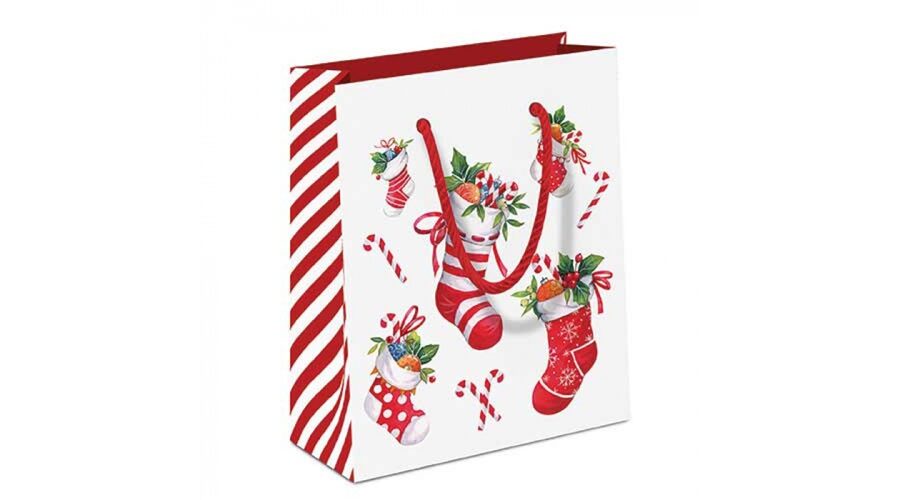 Papír ajándéktáska X-mas stockings white, 22x13x25cm