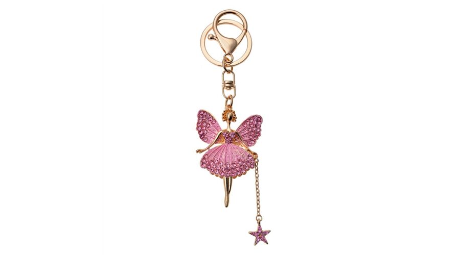 Fém kulcstartó, arany, üveggyöngyökkel, rózsaszín balerina