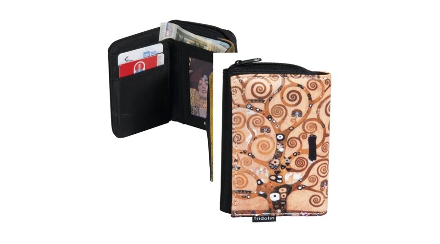 Elegáns pénztárca Klimt Életfa alkotásával díszítve.