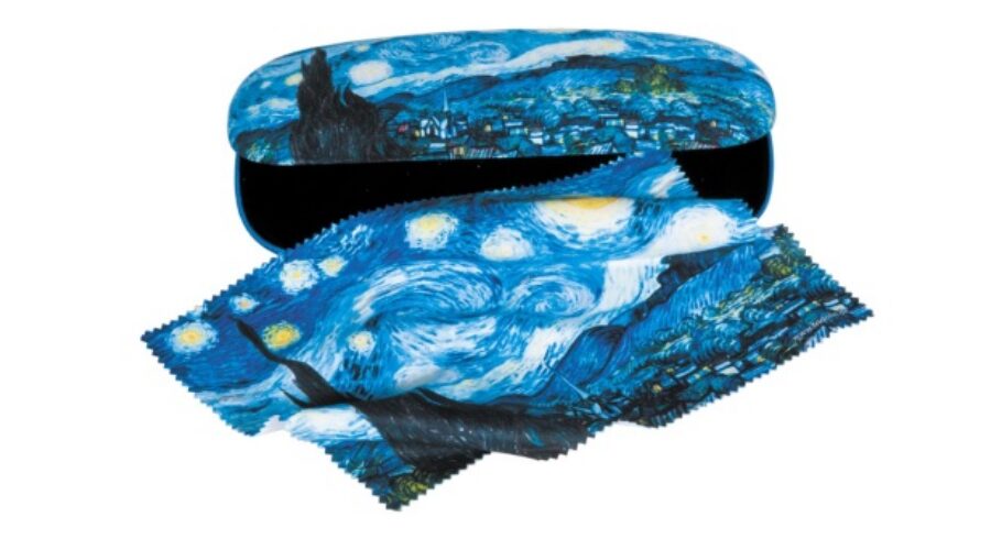 Textilbevonatú szemüvegtok Van Gogh Csillagos éj híres festményével, törlőkendővel.