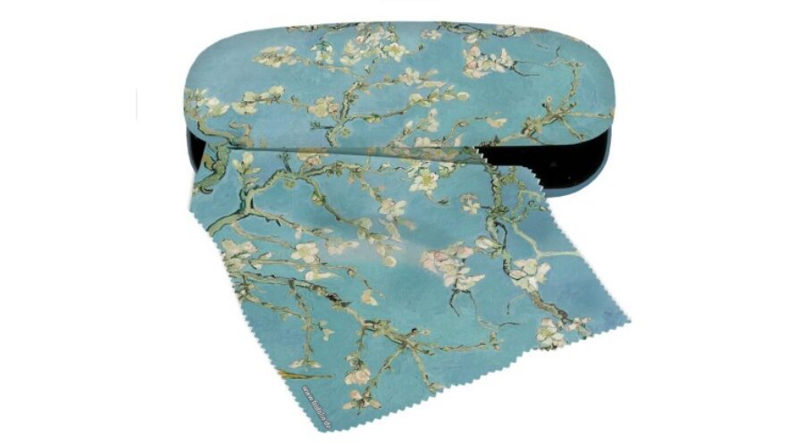 Textilbevonatú szemüvegtok Van Gogh Mandulavirágzás festményével, törlőkendővel.