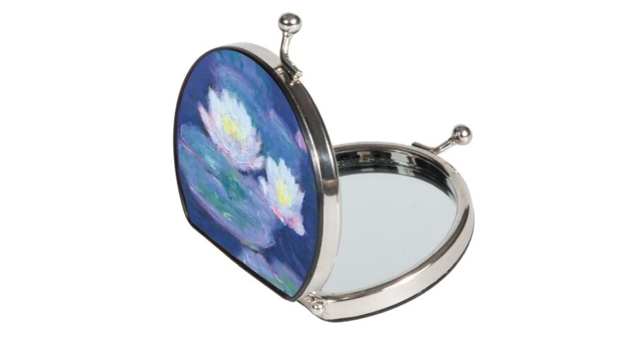 7×7,5×2,5 cm-es nagyítós zsebtükör Claude Monet Water Lilies festményével, textilbevonattal.
