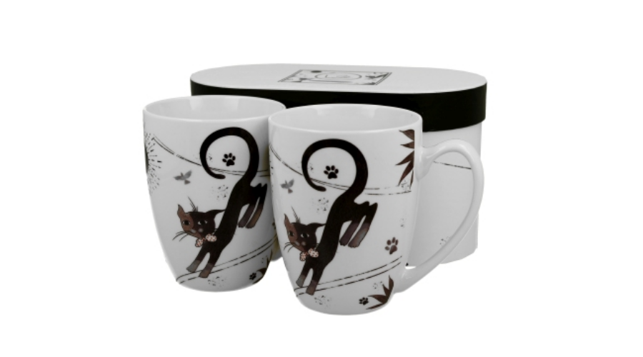 Porcelánbögre 380ml, 2 db-os, dobozban, Charming Cats