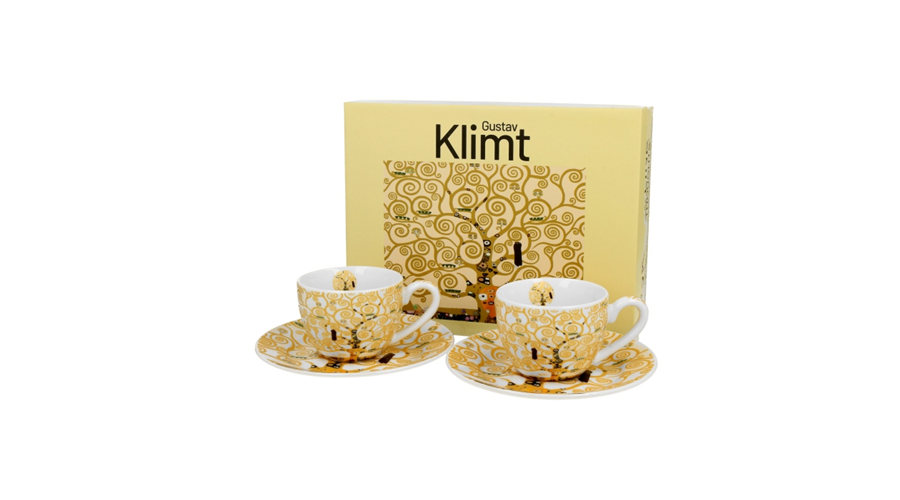 Porceláncsésze+alj, 110ml, 2 személyes, dobozban, Klimt: Életfa