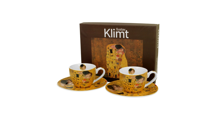 Porceláncsésze+alj, 110ml, 2 személyes, dobozban, Klimt: The Kiss