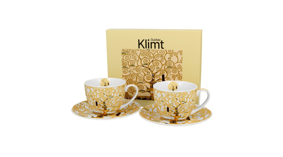 Porceláncsésze+alj, 270ml, 2 személyes, dobozban, Klimt: Életfa