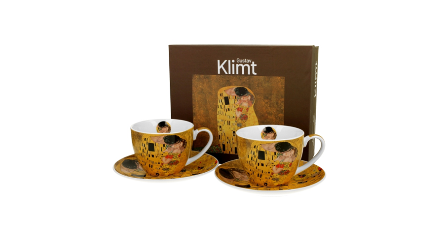 Porceláncsésze+alj, 270ml, 2 személyes, dobozban, Klimt: The Kiss