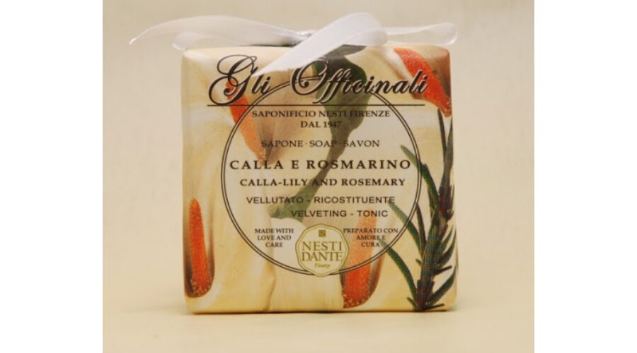 Természetes kála bódító liliom és friss rozmaring illatú szappan, amely bársonyos tapintást és frissességet biztosít.