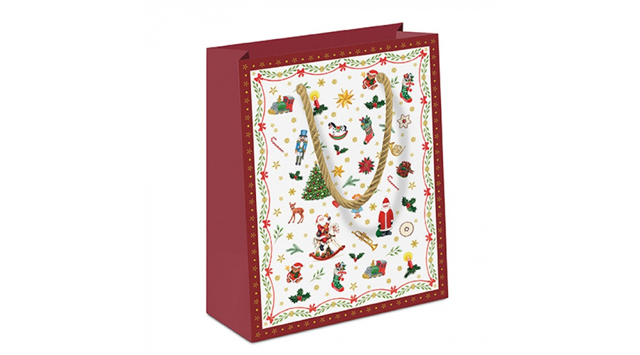 Papír ajándéktáska Ornaments all over red, 22x13x25cm