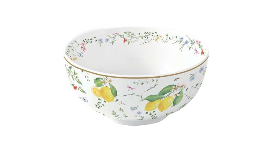 Porcelán reggelizőcsésze+alj 370ml dobozban, Fleurs et Citrons