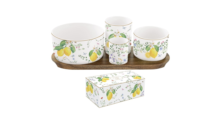 Sárga citrom porcelán kínálótál 25×18,5cm, Fleurs et Citrons