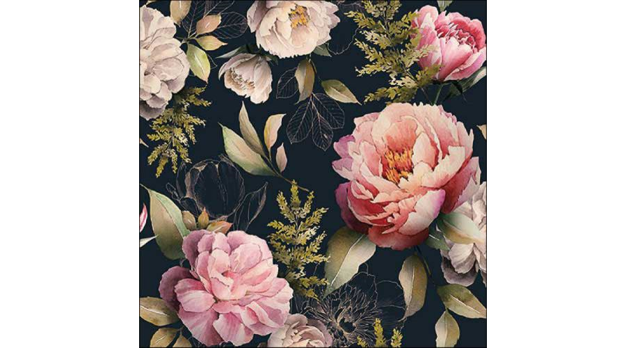 Papírszalvéta Peóniák Fekete Kompozíció 33x33cm, 20db-os
