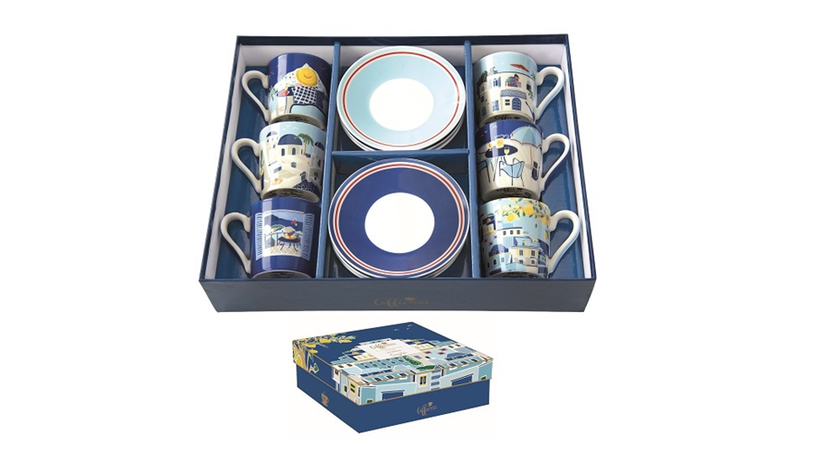 Porcelán eszpresszócsésze+alj 6 személyes, 100ml, dobozban, Sea Dreams, Coffee Mania
