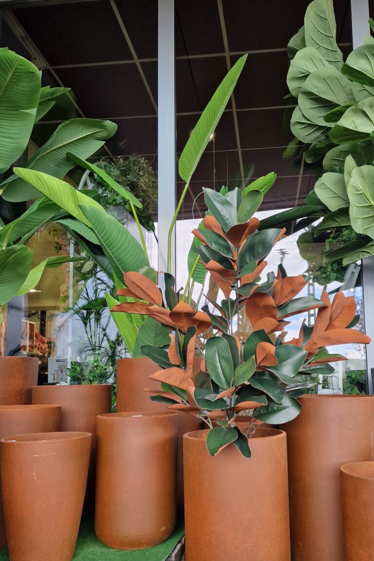 Selyemvirág Magnolia Grandiflora cserepes selyemvirág zöld, bordó 120 cm