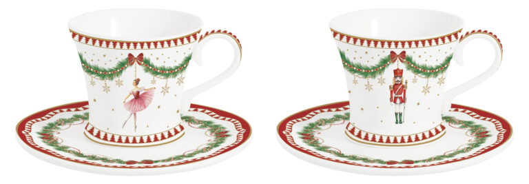 Porcelán eszpresszócsésze+alj 2 személyes, 80ml, dobozban, Magie de Noel