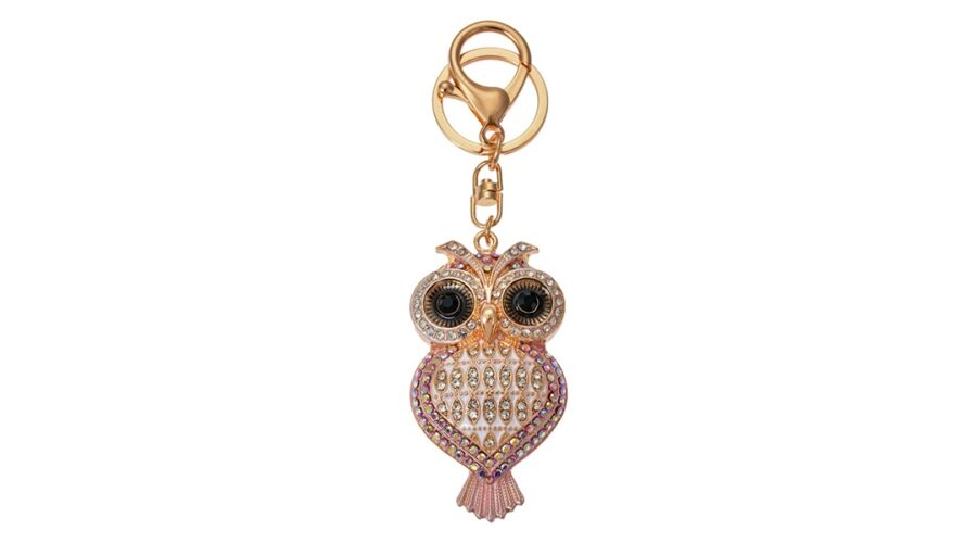 Fém kulcstartó baglyos, üveggyönggyel, 4x2x7cm