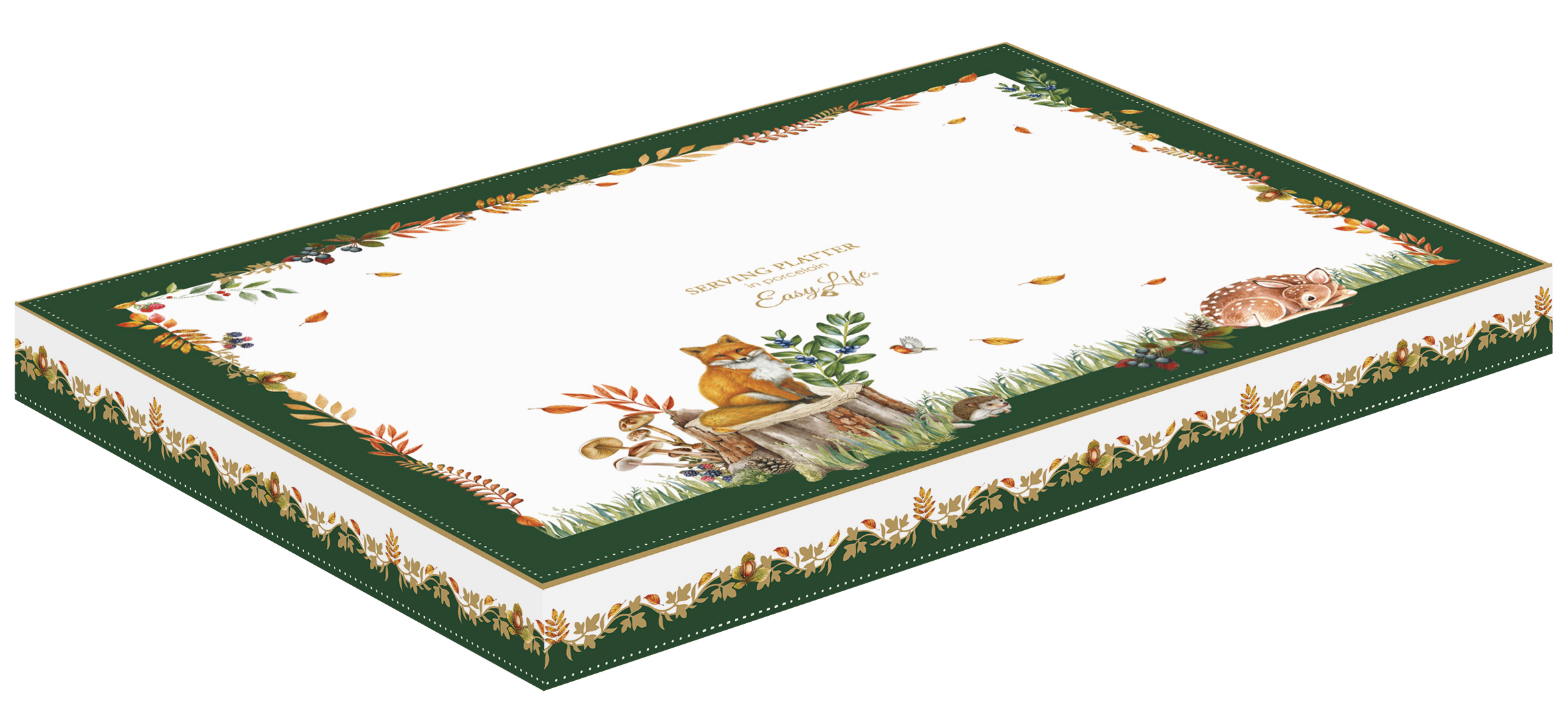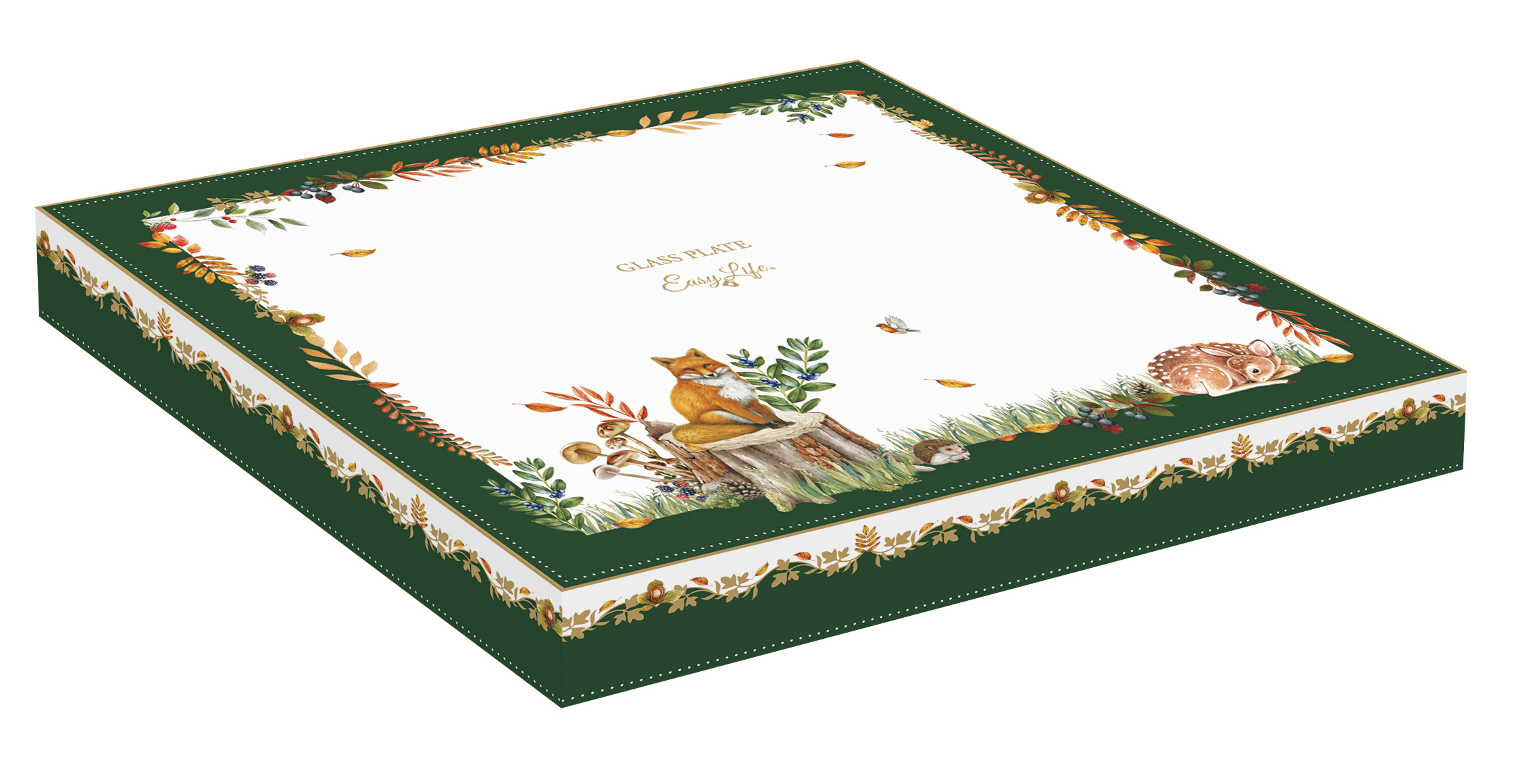 Hársfalevél üvegtányér 28x23cm, dobozban, Forest Dream