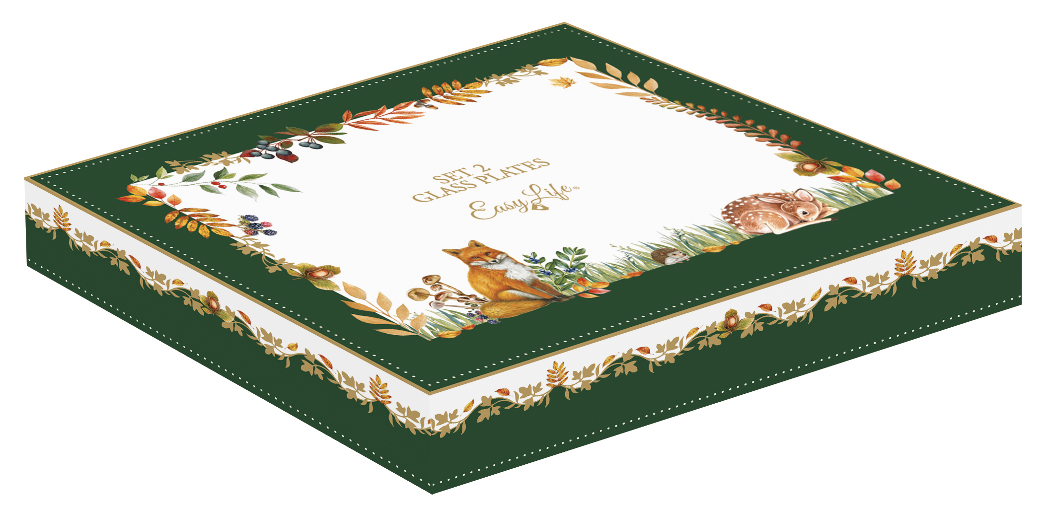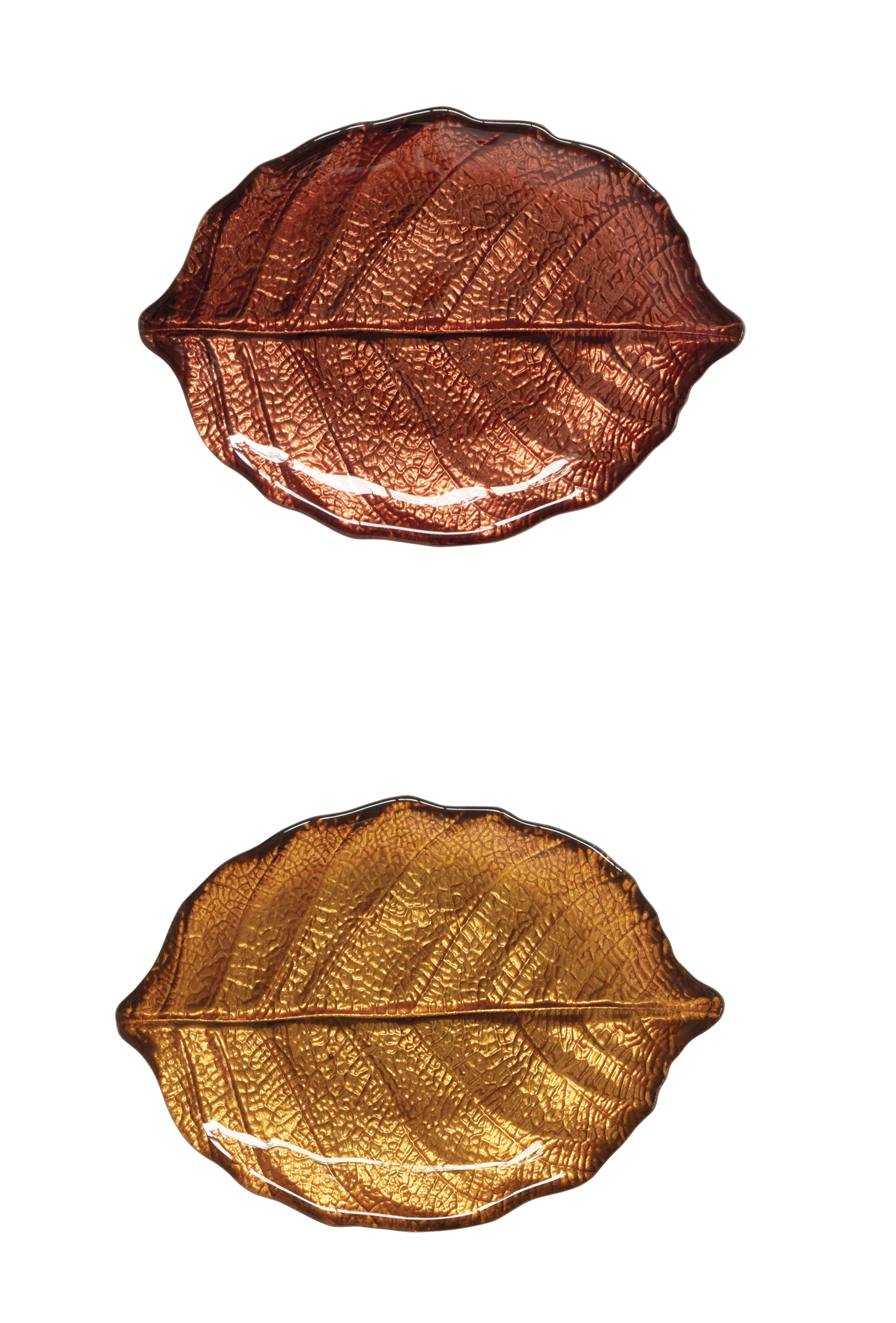 Juharfalevél üvegtányér 28x23cm, dobozban, Forest Dream