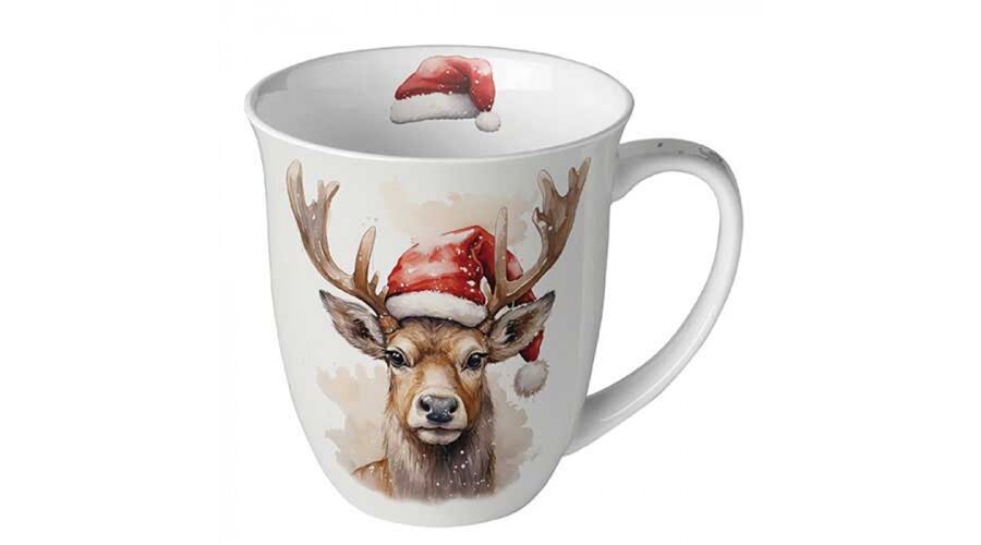 Porcelánbögre Deer with Santa hat white, 0,4l
