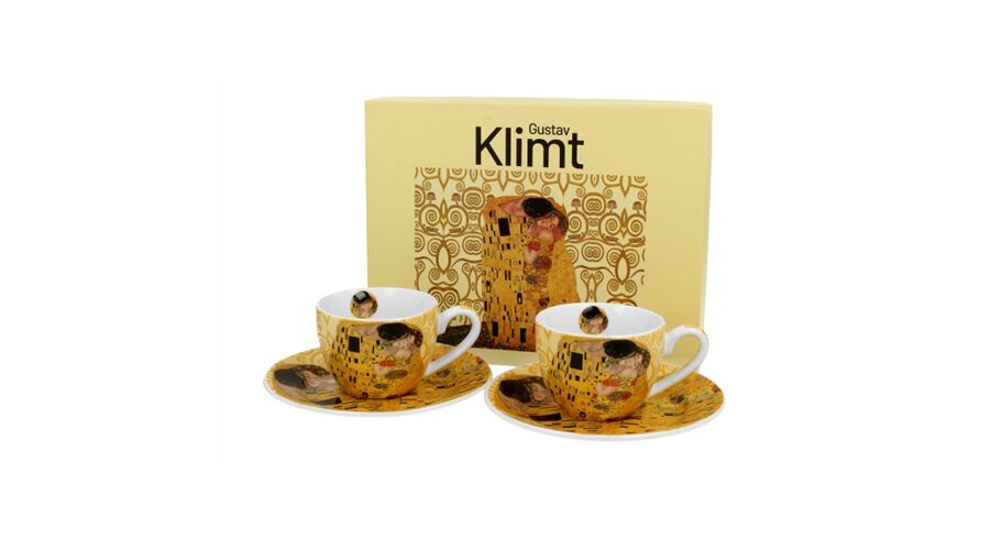 Porceláncsésze+alj, 110ml, 2 személyes, dobozban, Klimt: The Kiss