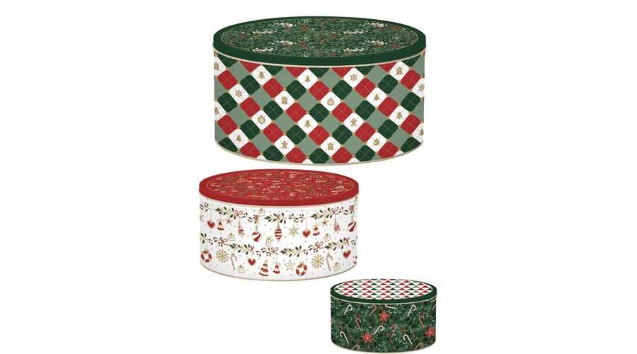 Fémdoboz 3 db-os szett kerek,20×8,5/17×8/13,5×6,5cm, Fancy Christmas, Coffee Mania