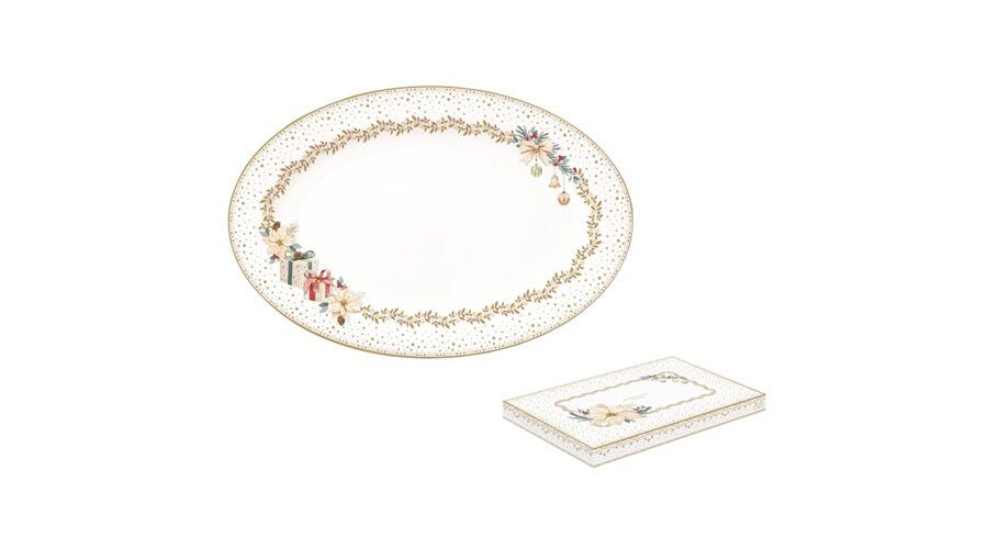 Porcelán ováltálca 35×23,5cm, dobozban, White Elegance