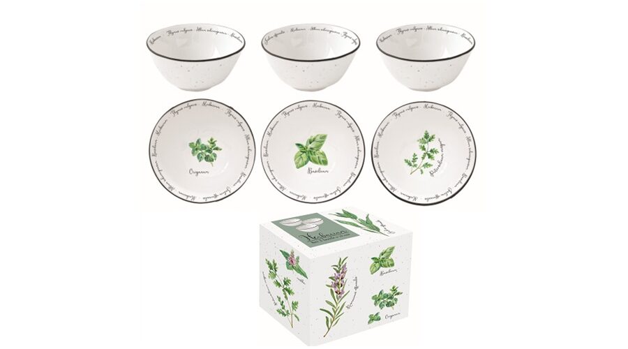 Porcelán tálkaszett S/3, 9,5cm, dobozban, Herbarium