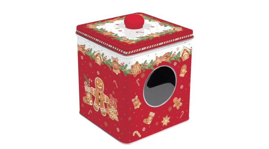 Ablakos fémdoboz 13x13x14,5cm, Fancy Gingerbread