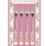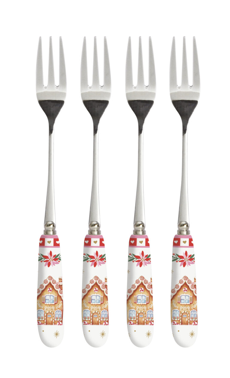 Rozsdamentes süteményes villaszett 4 db-os, porcelánnyéllel, Sweet Christmas