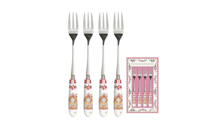 Rozsdamentes süteményes villaszett 4 db-os, porcelánnyéllel, Sweet Christmas
