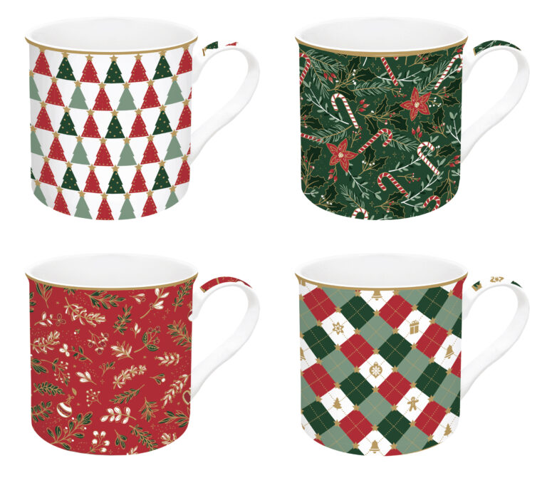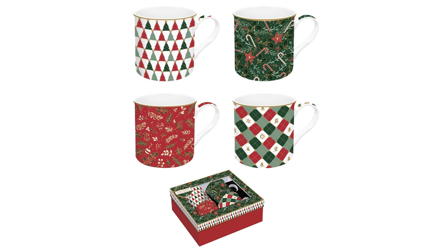 Porcelán bögreszett 4 db-os, 300ml, dobozban, Atmosphere, Fancy Christmas