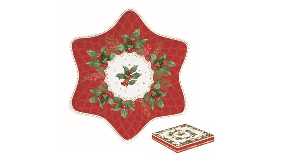 Porcelán csillagtálca 22,5cm, dobozban, Christmas Berries
