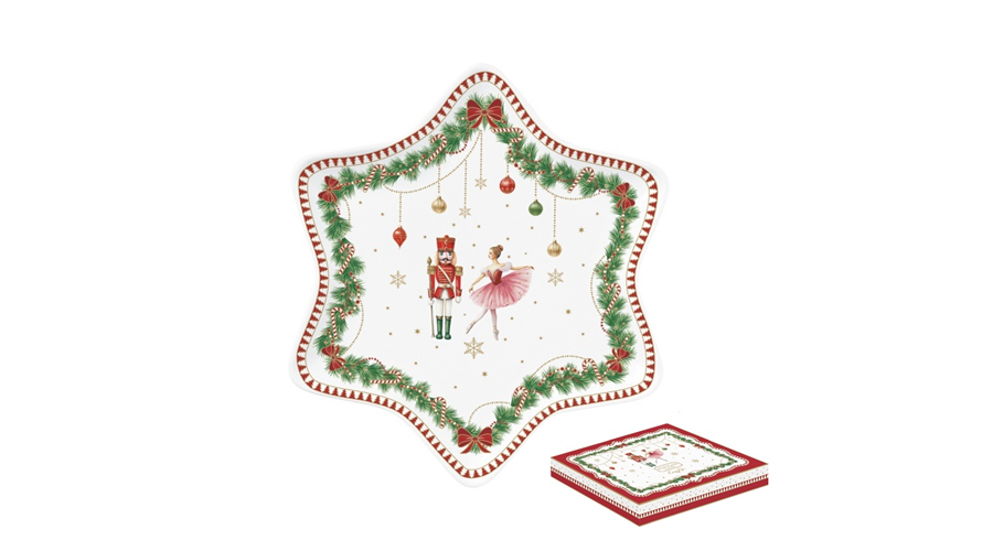 Porcelán csillagtálca 22,5cm, dobozban, Magie de Noel