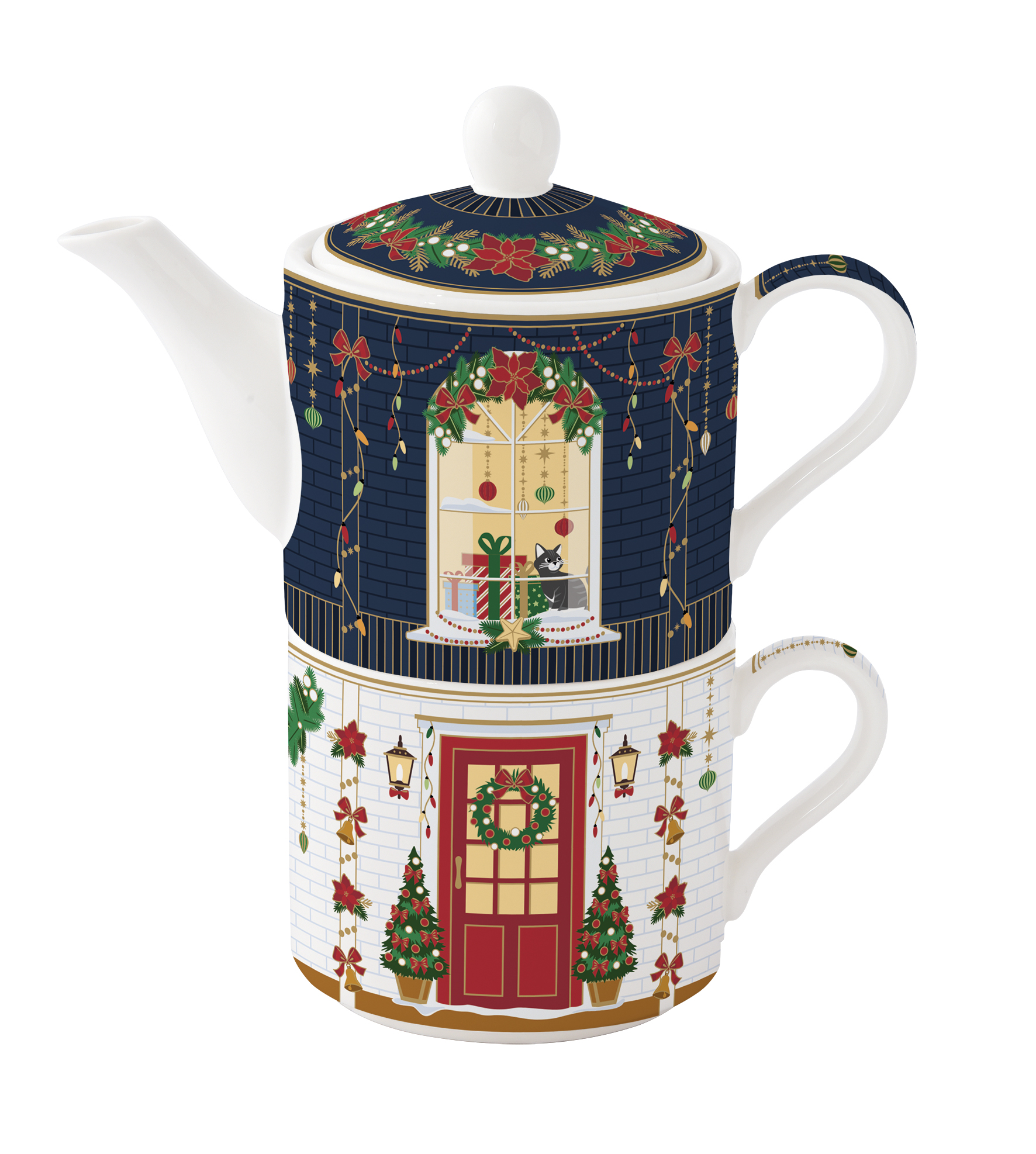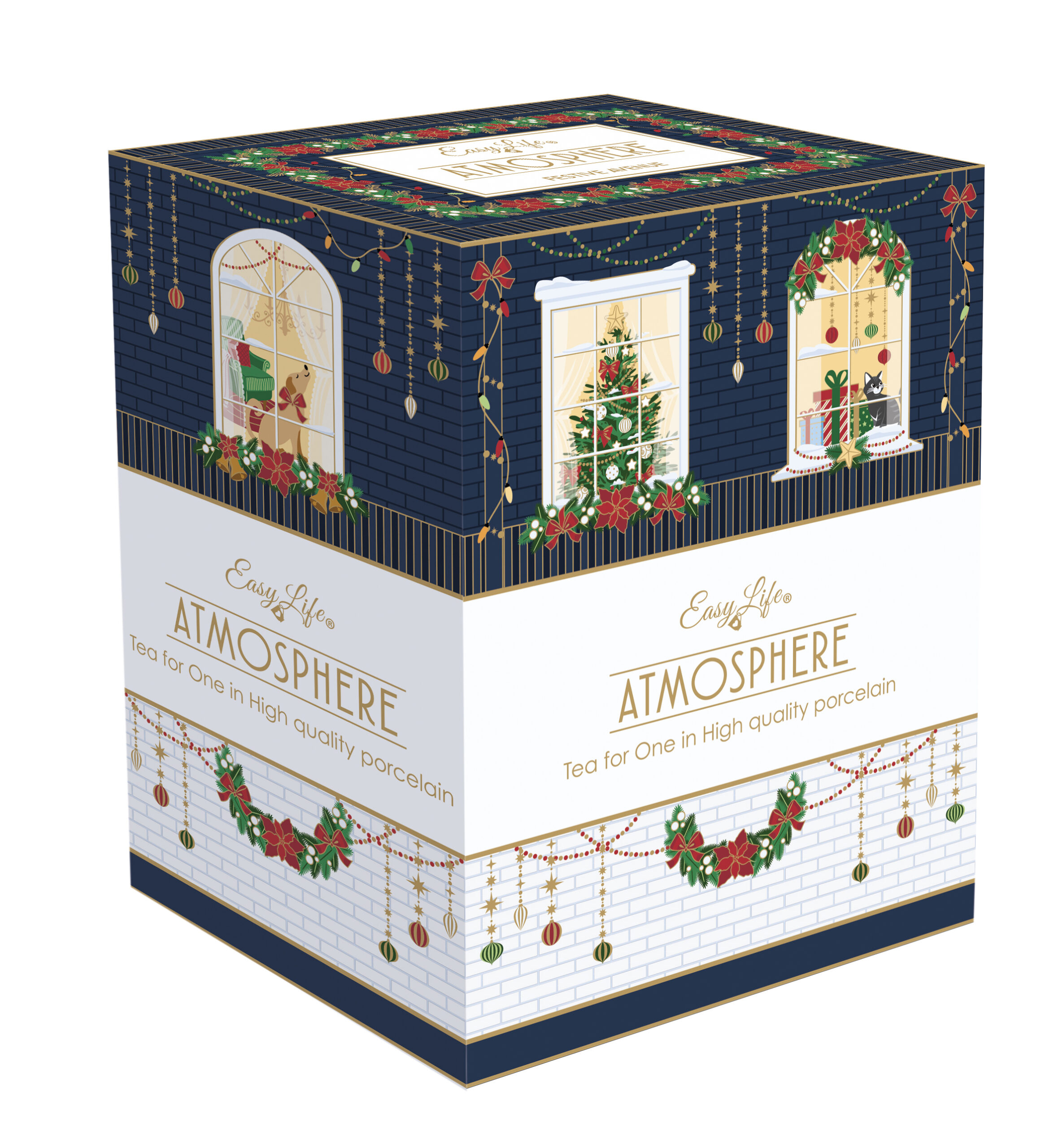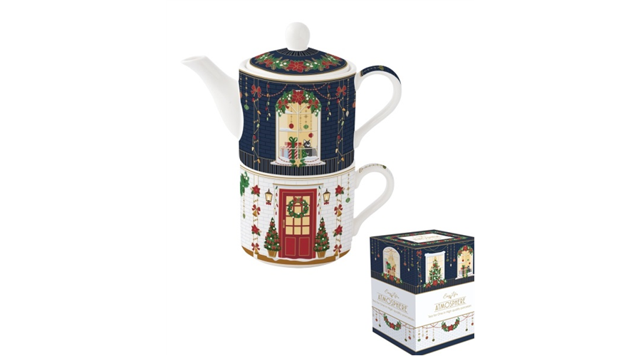Porcelán egyszemélyes teáskészlet 280ml+280ml, dobozban, Festive Avenue, Atmosphere