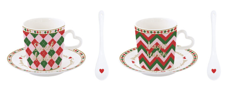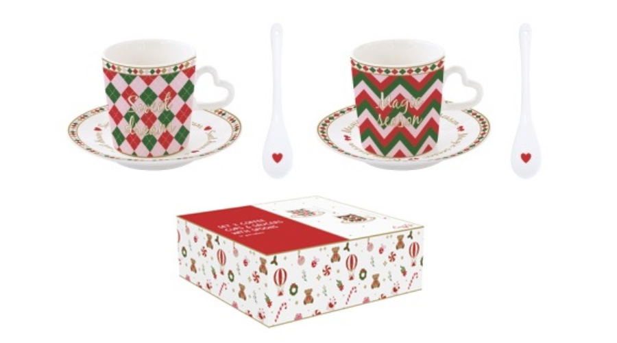 Porcelán eszpresszócsésze+alj 2 személyes, 100ml, dobozban, Christmas Twist