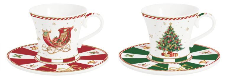 Porcelán eszpresszócsésze+alj 2 személyes, 80ml, dobozban, Christmas Tale