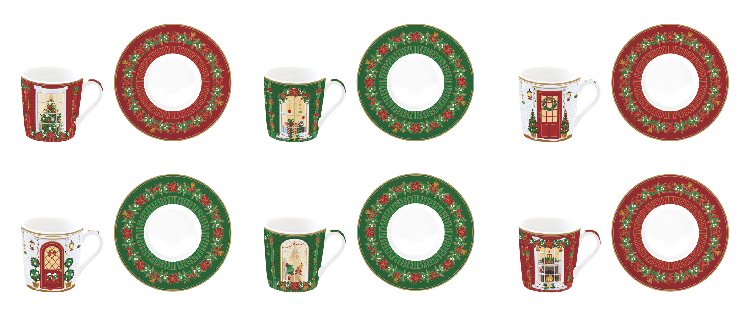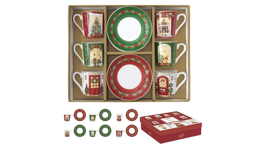Porcelán eszpresszócsésze+alj 6 személyes, 100ml, dobozban, Coffee Mania, Festive Avenue
