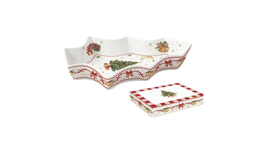 Porcelán fenyőtál, 28,5×21,5, cm, dobozban, Christmas Tale