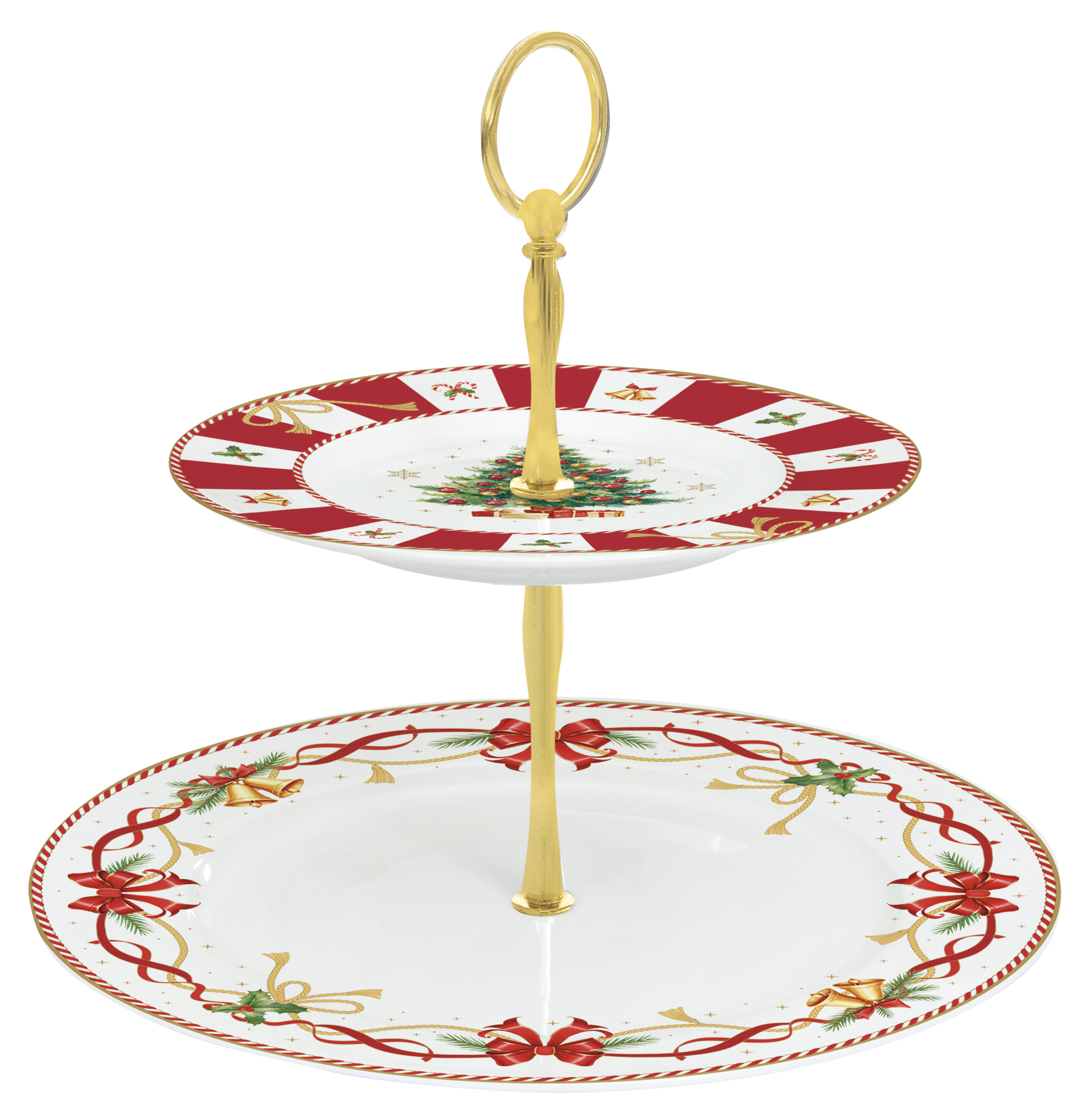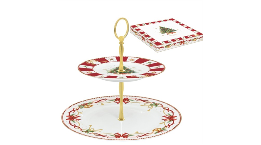 Porcelán süteményes állvány 2 emeletes, 19/27cm, dobozban, Christmas Tale