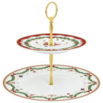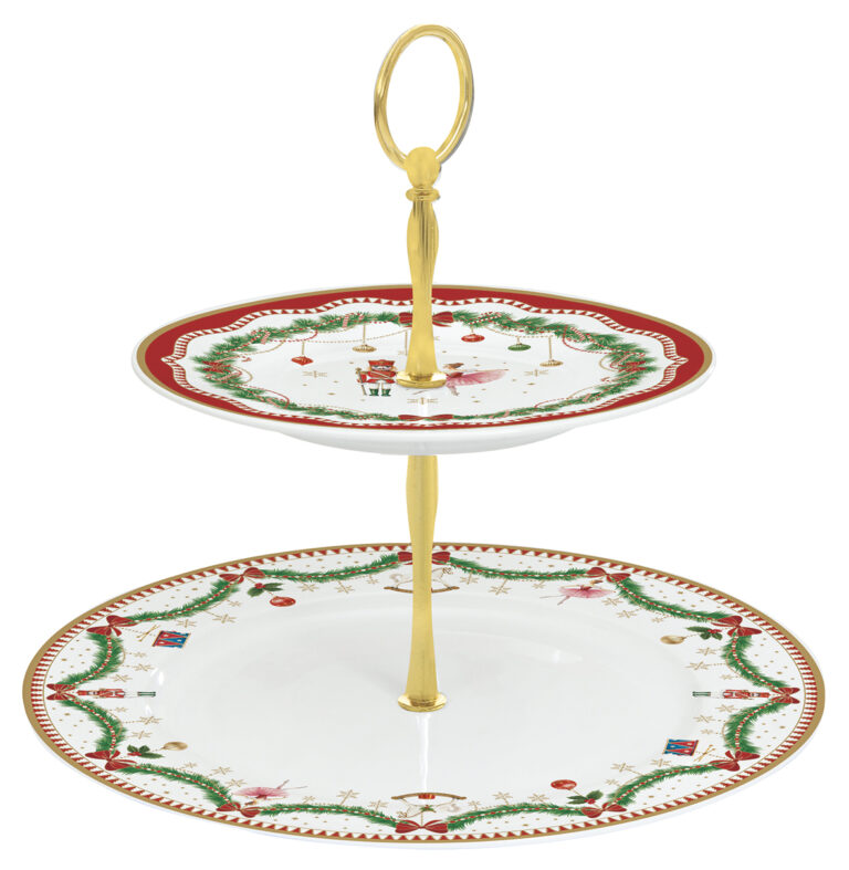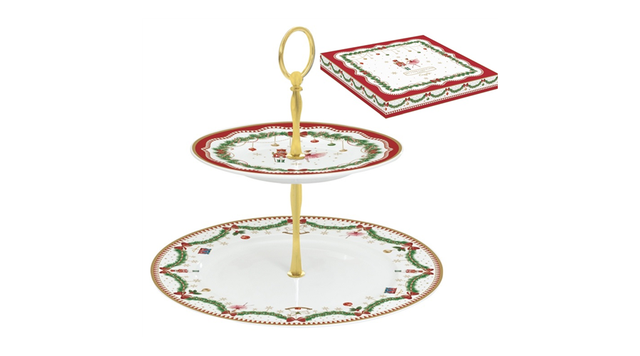 Porcelán süteményes állvány 2 emeletes 19/27cm dobozban, Magie de Noel