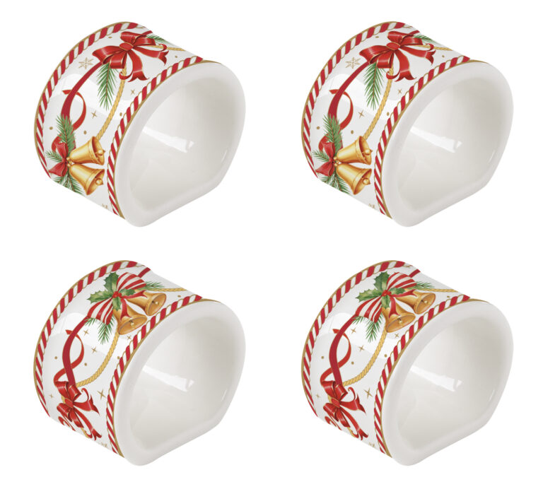 Porcelán szalvétagyűrű 4 db-os szett, 4,5cm, dobozban, Christmas Tale