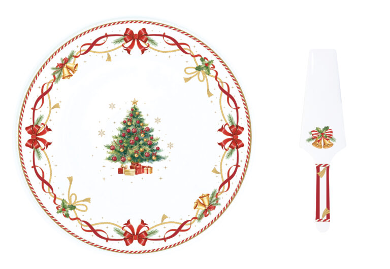 Porcelán tortatál lapáttal, 32cm, dobozban, Christmas Tale
