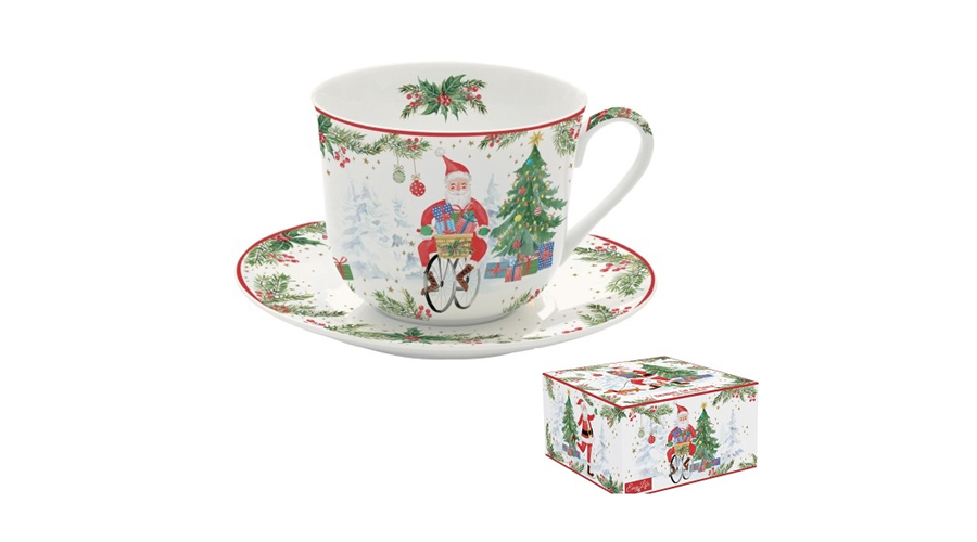 Porcelán reggelizőcsésze+alj 400ml, dobozban, Joyful Santa