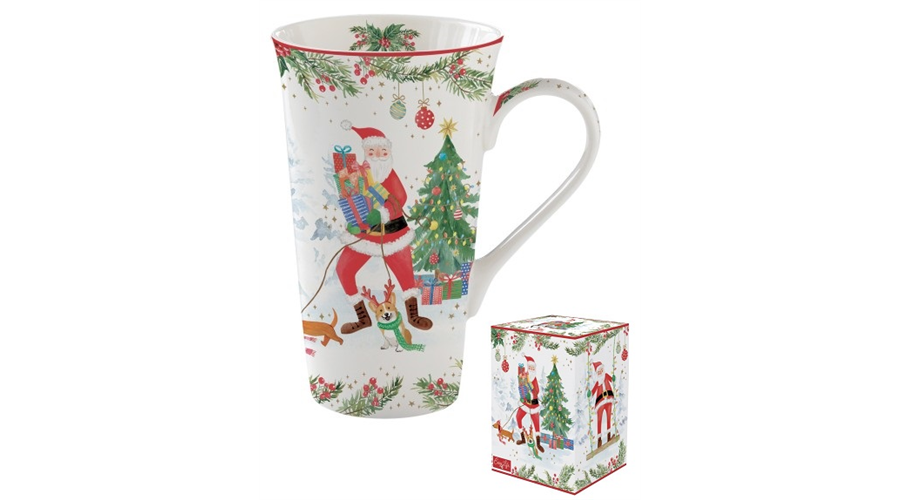 Porcelánbögre 600ml, dobozban, Joyful Santa