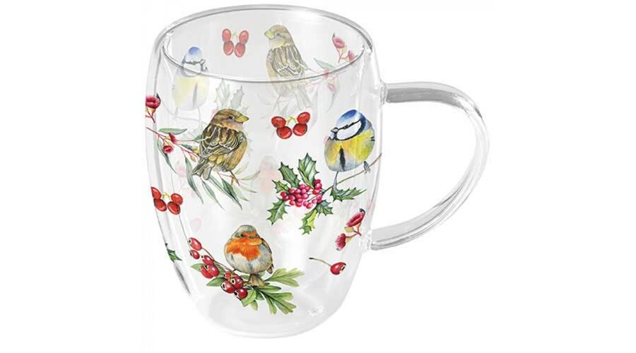 Duplafalú borosilicate üvegcsésze Birds in Winter 0,35l