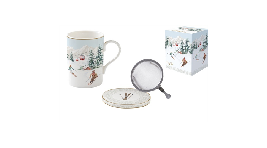 Porcelán szűrősbögre tetővel, 350ml, dobozban, Chalet
